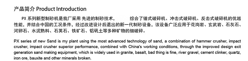 PX系列新型制砂機產(chǎn)品介紹
