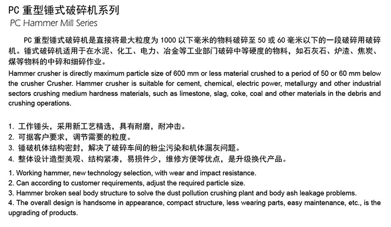 PC型錘式破碎機(jī)產(chǎn)品介紹